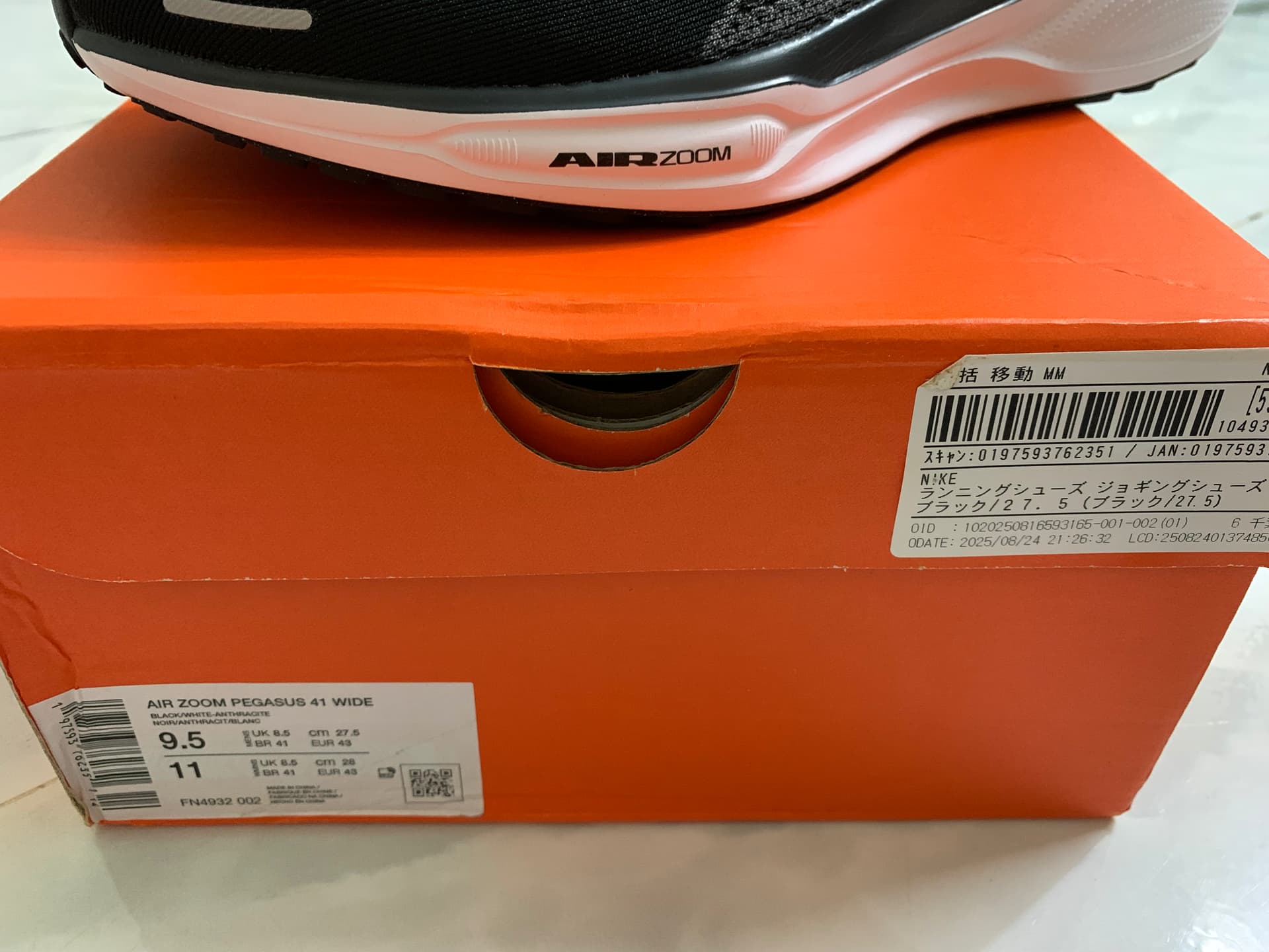 Nike pegasus 41 màu black, new fullbox, size 9,5 US = 8,5 UK = 43 EU