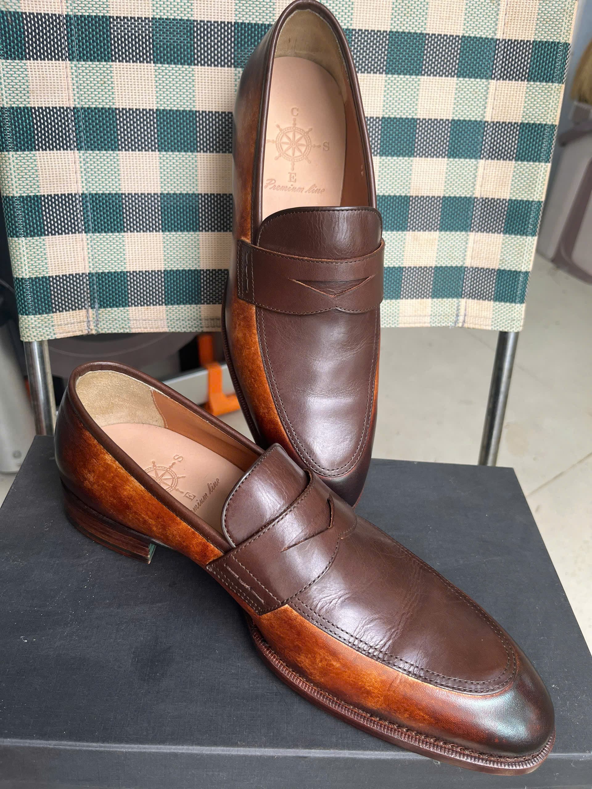 Do nhà chật và toàn đi giày thể thao nên cần nhượng lại đôi Penny Loafer CNES chính hãng, chế tác thủ công từ da thật cao cấp. Giày sử dụng kỹ thuật Goodyear welted – bền đẹp hàng chục năm, có thể thay đế dễ dàng, form giày lịch lãm, màu patina thủ công vô cùng tinh tế. Giày mới chưa đi, đế da mới tinh, chỉ ướm vào đi thử. Mua mới giá 6.000.000, nay thanh lý giá cực hời 4.000.000. CNES có nhiều cửa hàng trên toàn quốc và chuyên giày thủ công, bảo hành hậu mãi trọn đời.